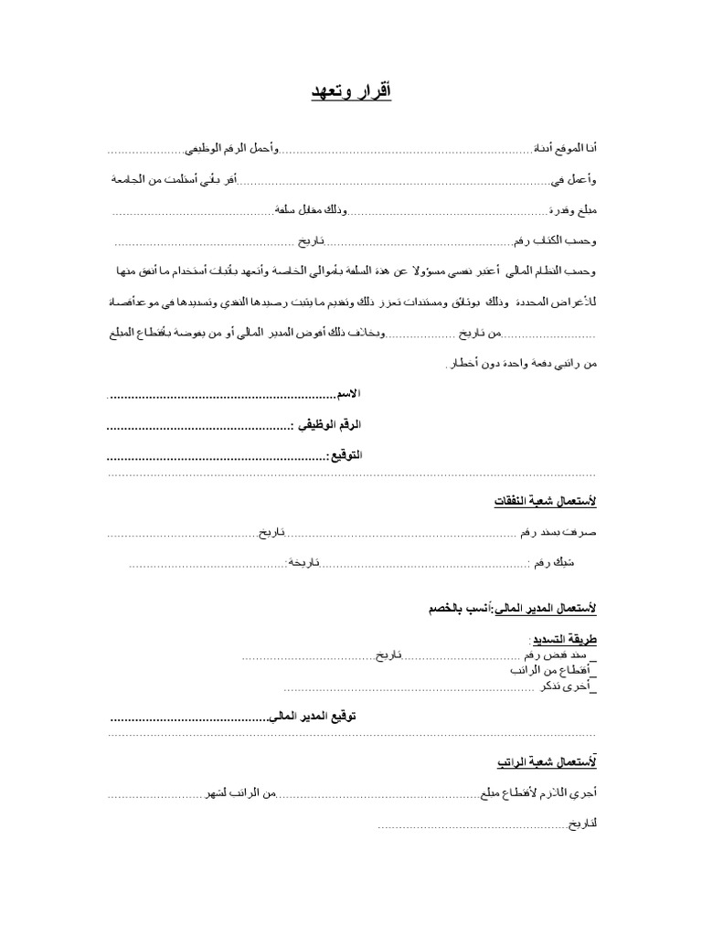 نماذج و قوالب نموذج إقرار وتعهد