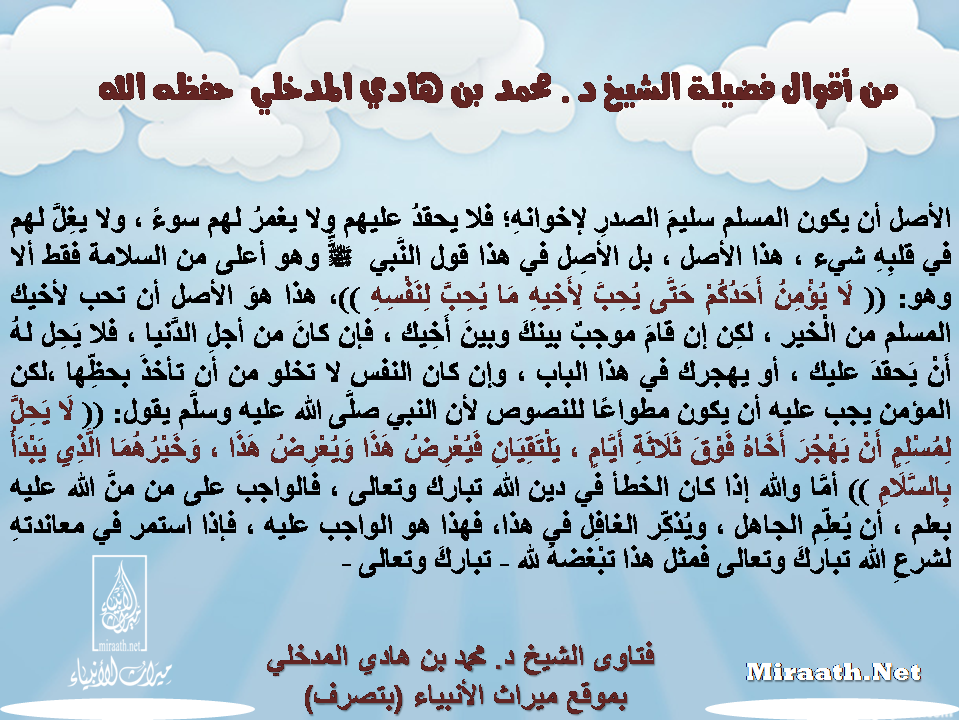 اقوال الشيخ محمد بن هادي المدخلي. موقع فضيلة الشيخ الدكتور محمد بن هادي المدخلي عضو هيئة التدريس بكلية الحديث الشريف بالجامعة الإسلامية بالمدينة. الشيخ محمد بن هادي المدخلي حفظه الله the condition of security and stability. لماذا لا ي علن الشيخ محمد بن هادي توبته وي صلح علاقته مع الذين تكلم فيهم بغير حق بل وشه ر بهم وشوه سمعتهم وحر ض عليهم وحذر من دروسهم ودعوتهم بل وقد ظلم منهم من ظلم وهذا أمر مشهور. قناة تعود بك إلى الإسلام كما بدأ قناة قسنطينة الدعوية تابعونا على.