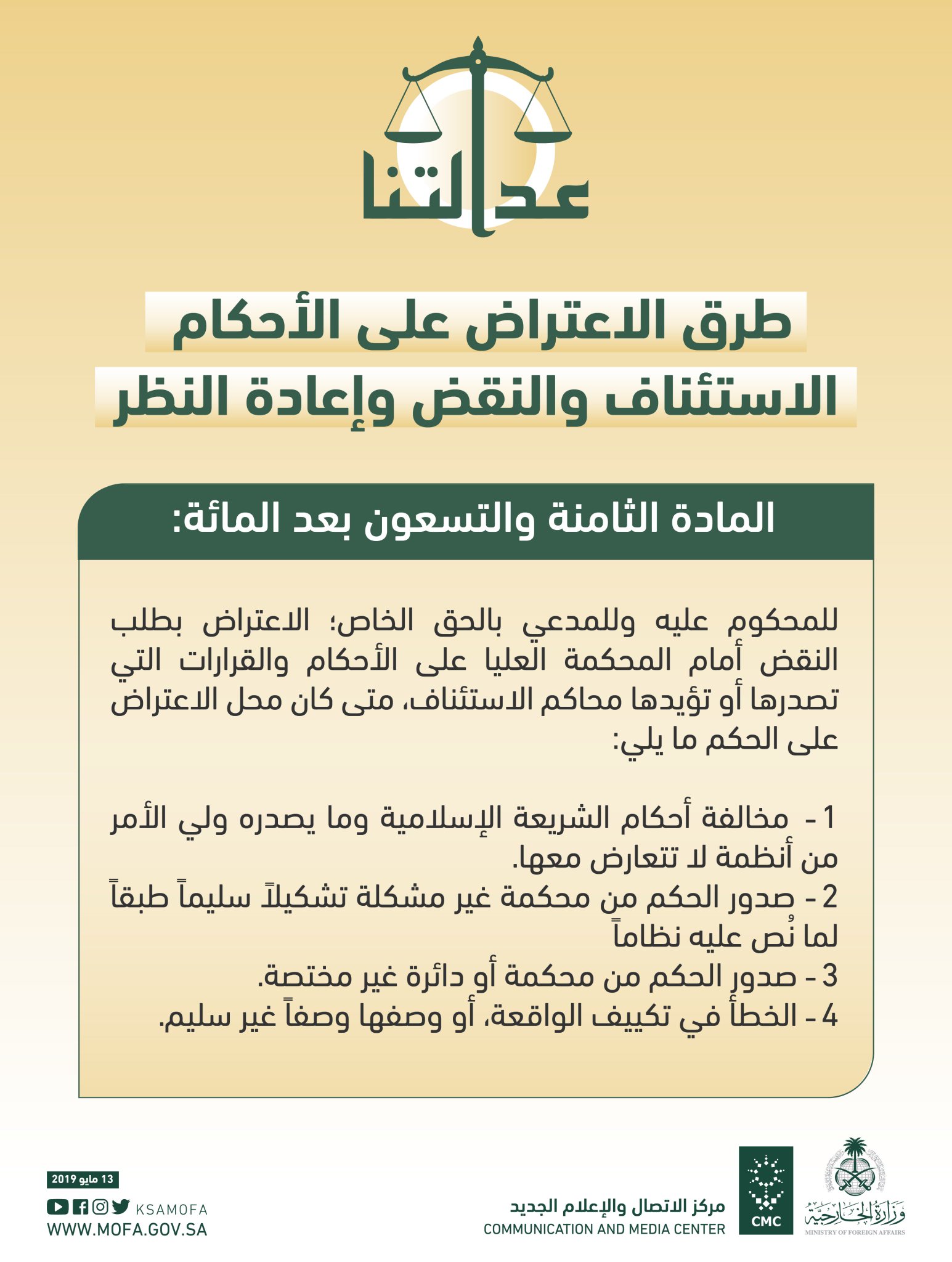 وزارة الخارجية On Twitter عدالتنا تعر ف على الأنظمة السعودية طرق الاعتراض على الأحكام المادة 198